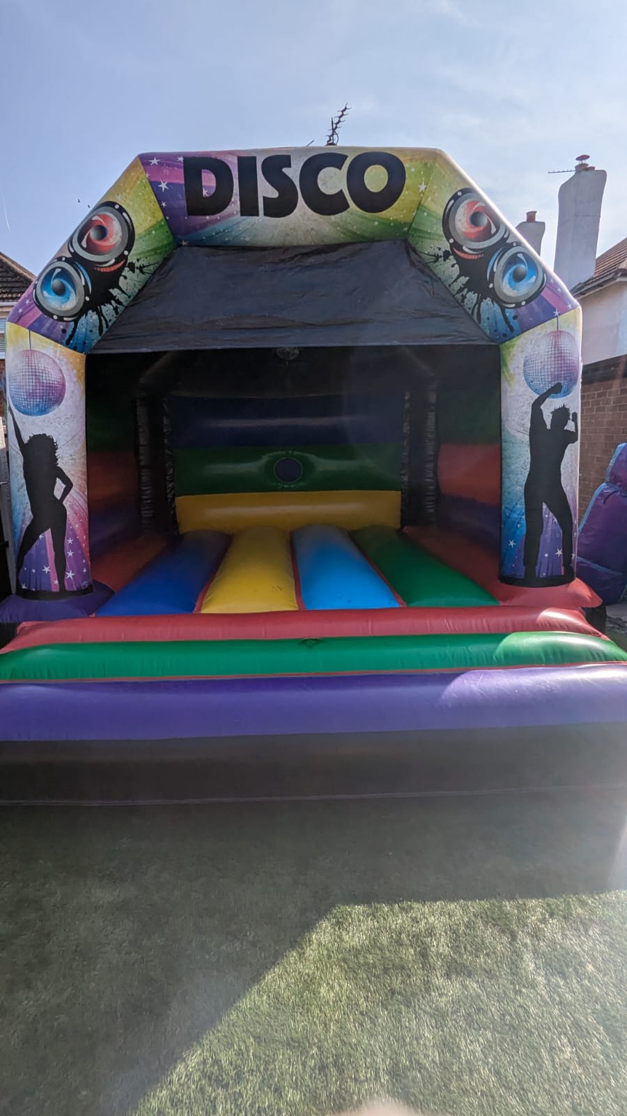 Bring the bounce and the beats to your next party with our vibrant Multi-Coloured Disco Bouncy Castle – the perfect inflatable for guests who love to party!
