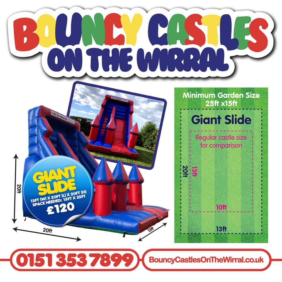 Are you looking for a dash of thrill? If this is the case, Bouncy Castles on the Wirral offer bouncy castles with an inflatable slide attached as part of our Bouncy Castle Combo. Still not enough? Well, why not try our draw dropping GIANT slide.