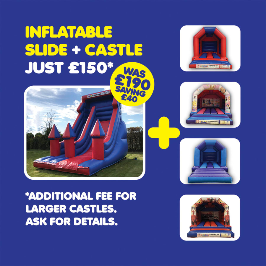We are proud to be able to now offer the unbeatable deal of a fun filled Inflatable Slide along with any 15 x 12 castle. If you’re looking to really push the boat out, why not hire two inflatables to double the amount of fun for you and your guests? The 15 x 12 bouncy castles we can provide are the Big Bouncer, Let’s Party, Princess and Superhero selections, to name but a few.